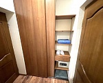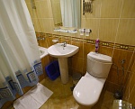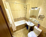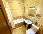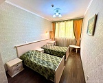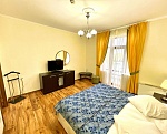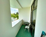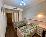 Однокомнатный, двухместный номер, южная сторона, общая площадь номера составляет 25 м, спальня 15 м, санузел 4 м, (раковина, туалет, ванная, фен), прихожая со встроенным шкафом, балкон на морскую сторону.