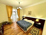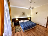 Однокомнатный, двухместный номер, южная сторона, общая площадь номера составляет 25 м, спальня 15 м, санузел 4 м, (раковина, туалет, ванная, фен), прихожая со встроенным шкафом, балкон на морскую сторону.